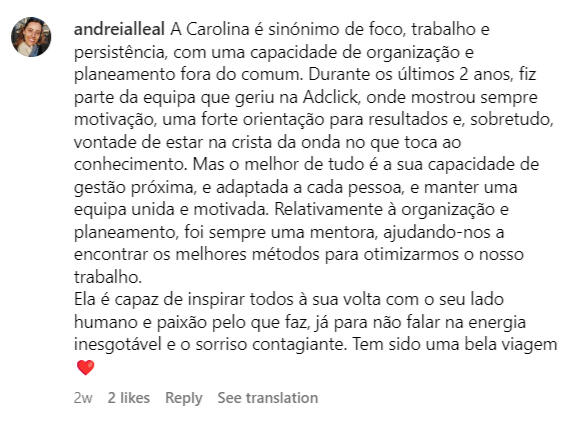 🙌 Sempre fui a menina das listas e que tem sempre algum projeto ou desafio em mãos.🎓 Licenciada e Mestre em Gestão, sou apaixonada por comunicação e especialista em Marketing Digital há mais de 6 anos.🔥 Sou Formadora certificada, Mentora de Produtividade certificada e Personal Organizer.🤩 Antes achava que a minha organização tinha de ser perfeita e vivia muitas vezes frustrada com isso. Quando me apercebi que mesmo com organização e planeamento imperfeito é possível fazer o que é preciso e atingir coisas que quero, mas vivendo mais feliz e tranquila, percebi que tinha de falar com o mundo sobre isso.🌿 O meu estilo de vida é minimalista e sustentável e sou fã do conceito Lagom.